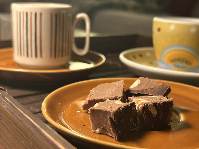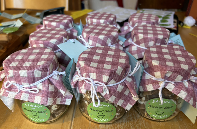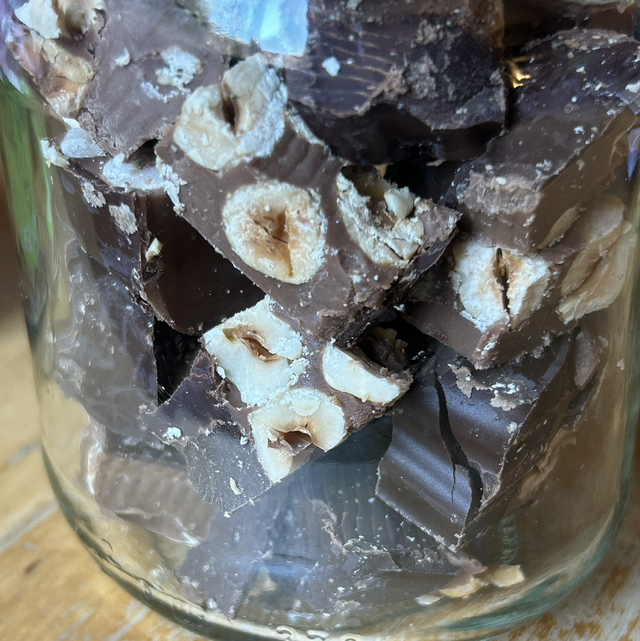 The classic torrone cut in small bites and stored in a jar of glass to preserve taste and flavor. At Christmas times, the jar will be decorated with jolly Christmas fabric.